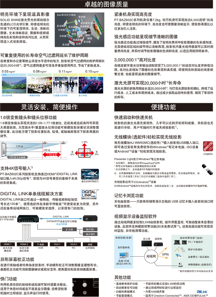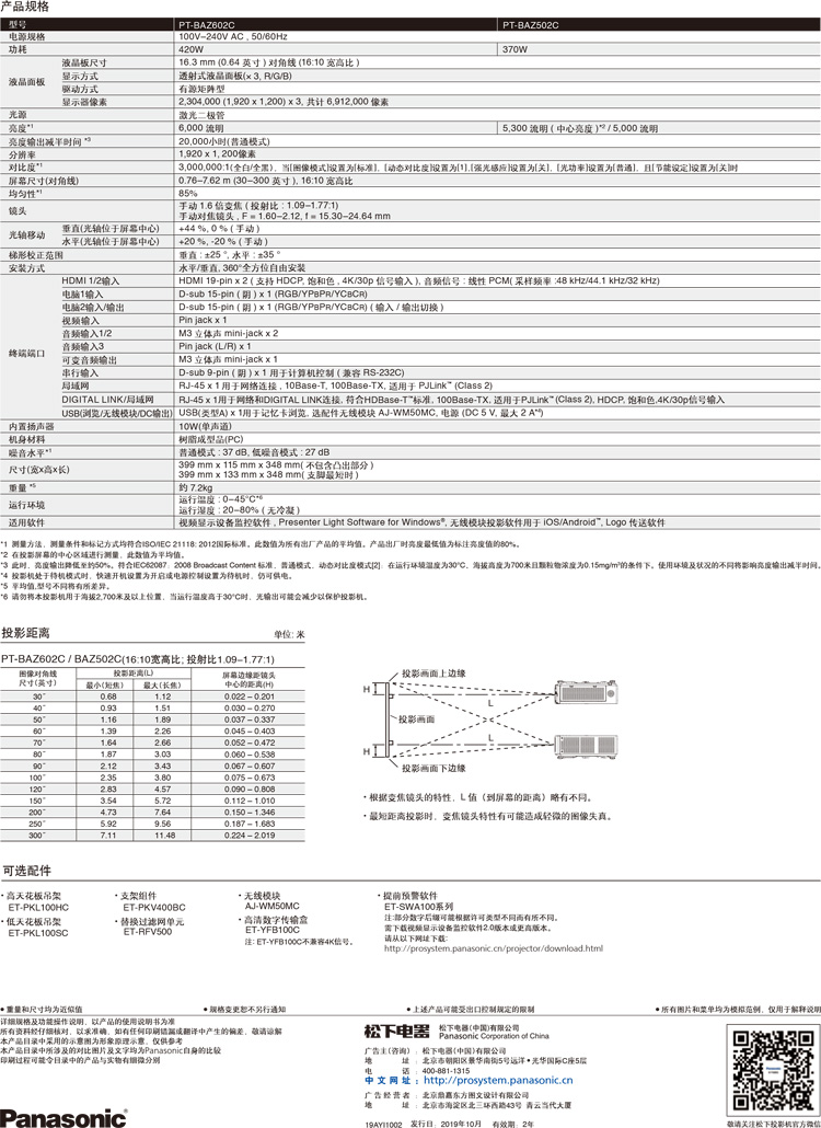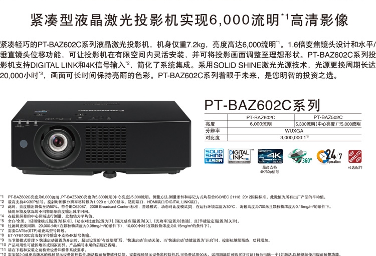 • 商品名称:松下 PANASONIC PT-BAZ502C (LCD/5300流明/1920*1200) 投影机