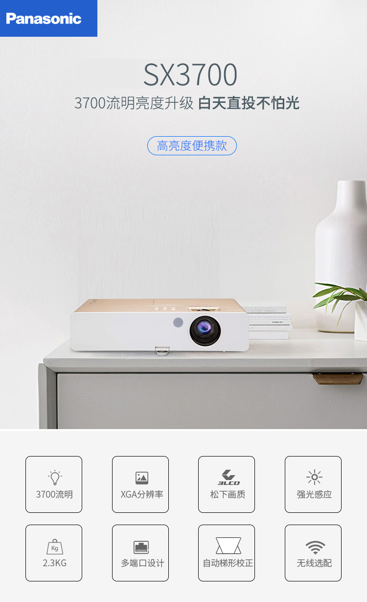 松下 PANASONIC PT-SX3700(LCD/3700流明/1024×768DPI)投影机