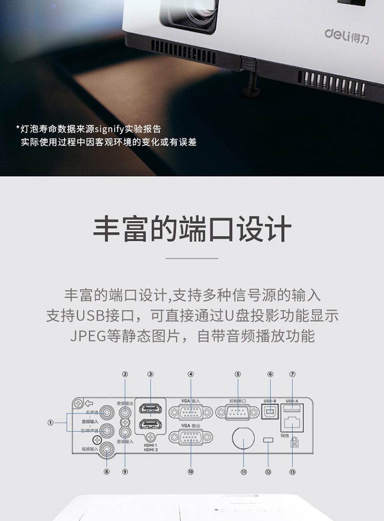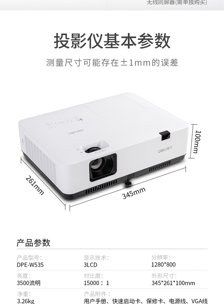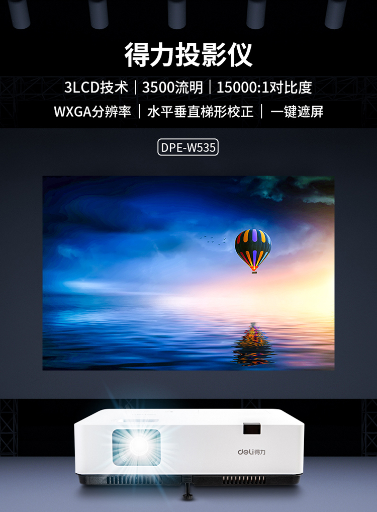 • 商品名称:得力 DELI DPE-W535(LCD/3500流明 /1280×800DPI)投影机