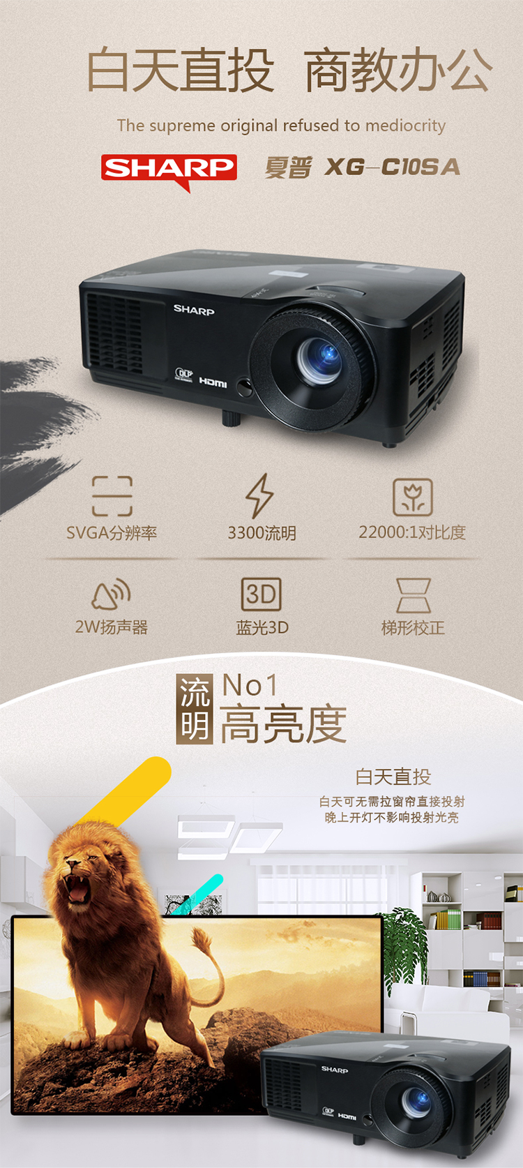 • 商品名称:夏普 SHARP XG-C10SA(DLP/3200流明/800×600DPI)投影机