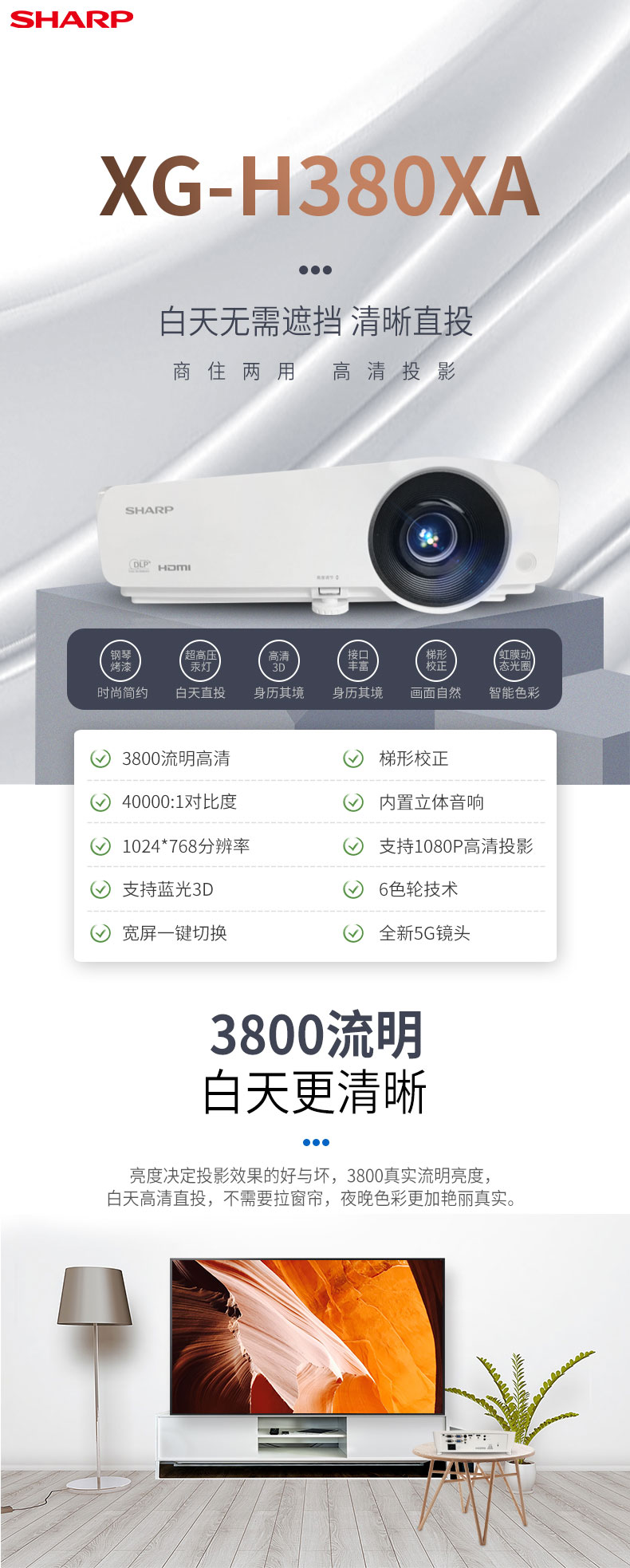 • 商品名称:夏普 SHARP XG-H380XA(DLP/3800流明/1024×768DPI)投影机