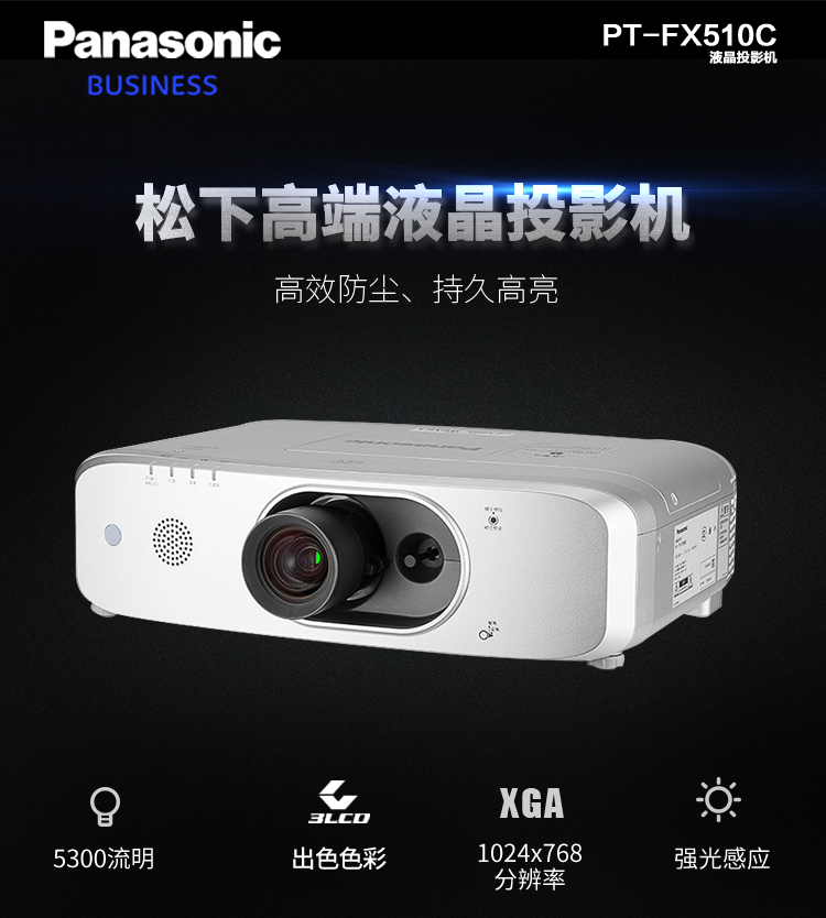 • 商品名称:松下 PANASONIC PT-FX510C 投影机 办公投影仪 标清 5300流明 XGA 3LCD