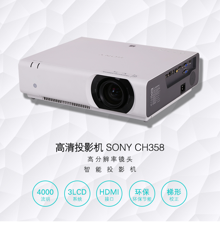 办公设备  > 会议/演示设备  > 投影演示  >  索尼/SONY  >  索尼 SONY VPL-CH358(LCD/4000流明/1920×1200DPI)投影机