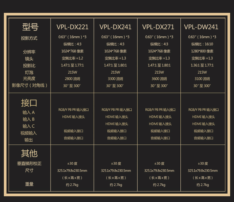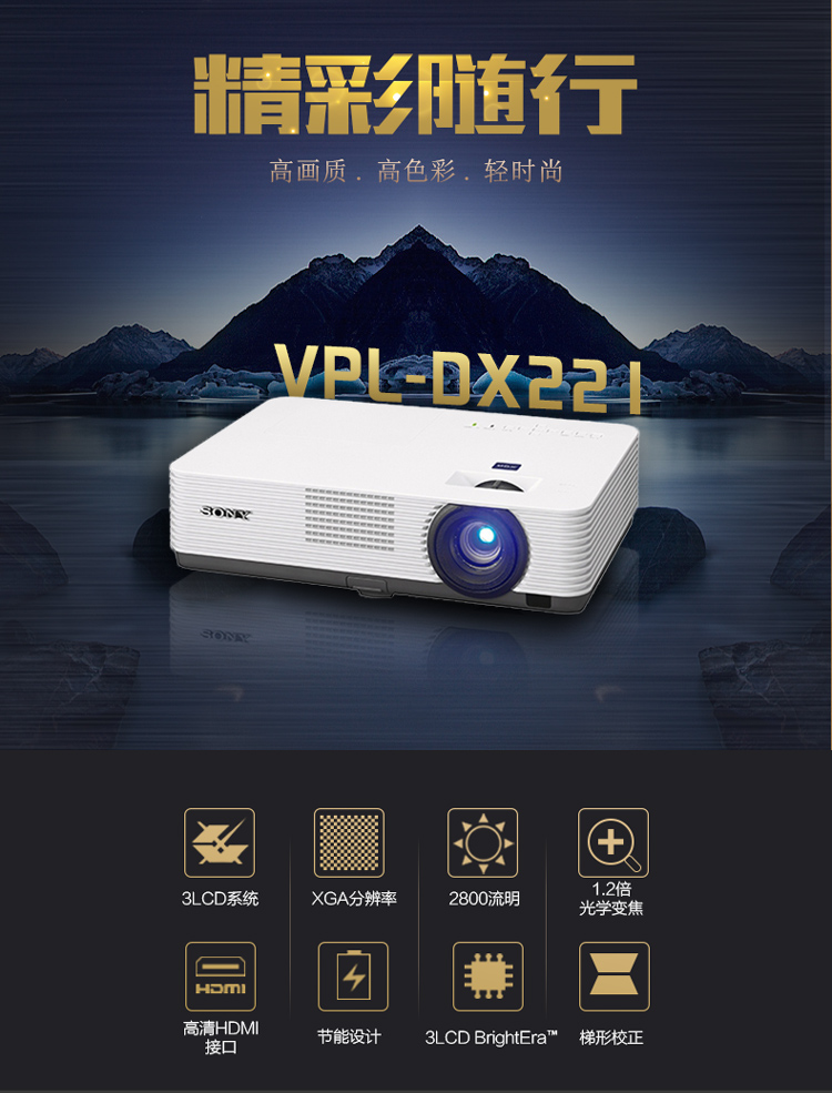 • 商品名称:索尼 SONY VPL-DX221(3LCD/2800流明/1024×768DPI)投影机