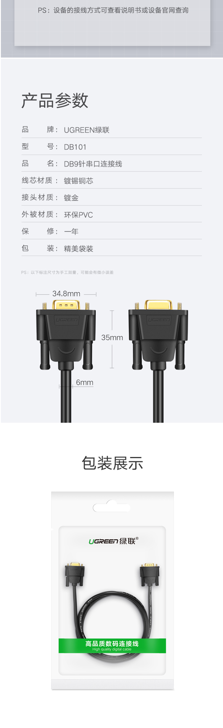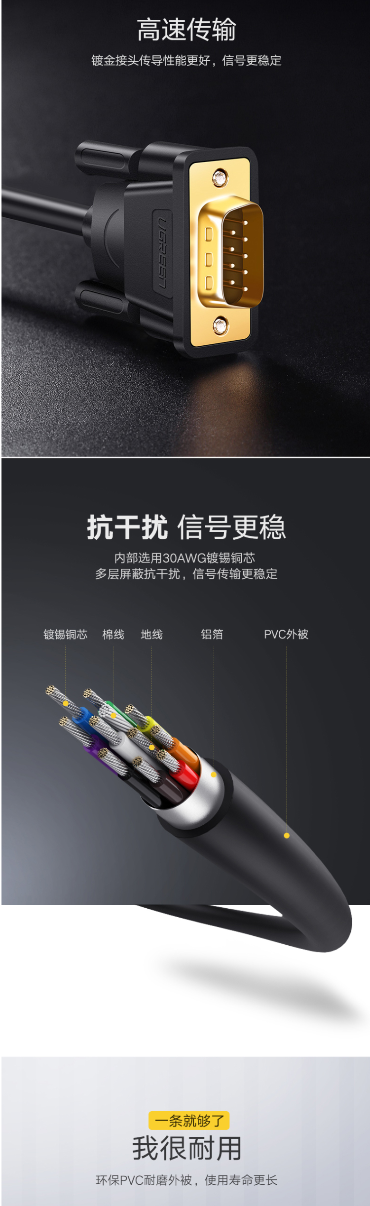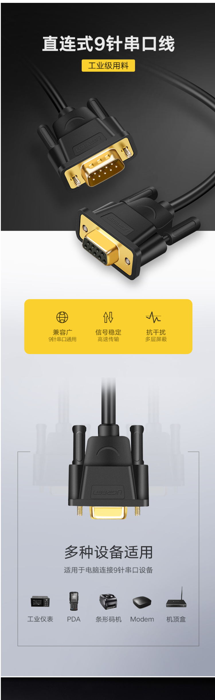 商品名称: 绿联 20153 DB9串口线 RS232公对公扫描仪数据连接线 适用扫描仪税控机编程机 1.5米 (单位:根)