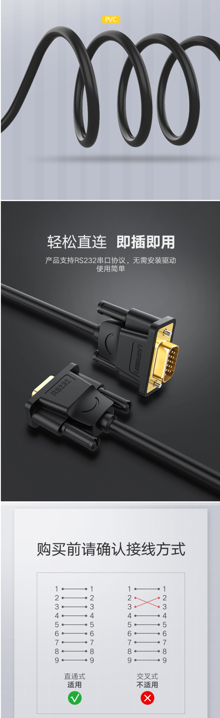 工业用品  > 电工  > 线槽/线管/线缆保护  >  绿联/UGREEN  >  绿联 20153 DB9串口线 RS232公对公扫描仪数据连接线 适用扫描仪税控机编程机 1.5米 (单位:根)