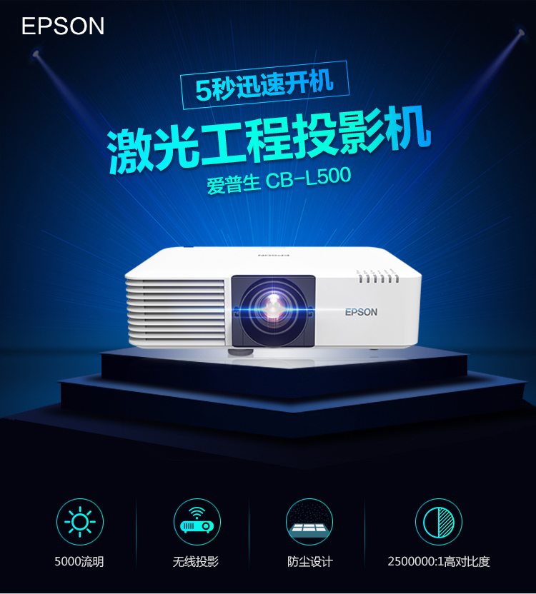 爱普生 EPSON CB-L500(LCD/5000流明/1024×768DPI)投影机