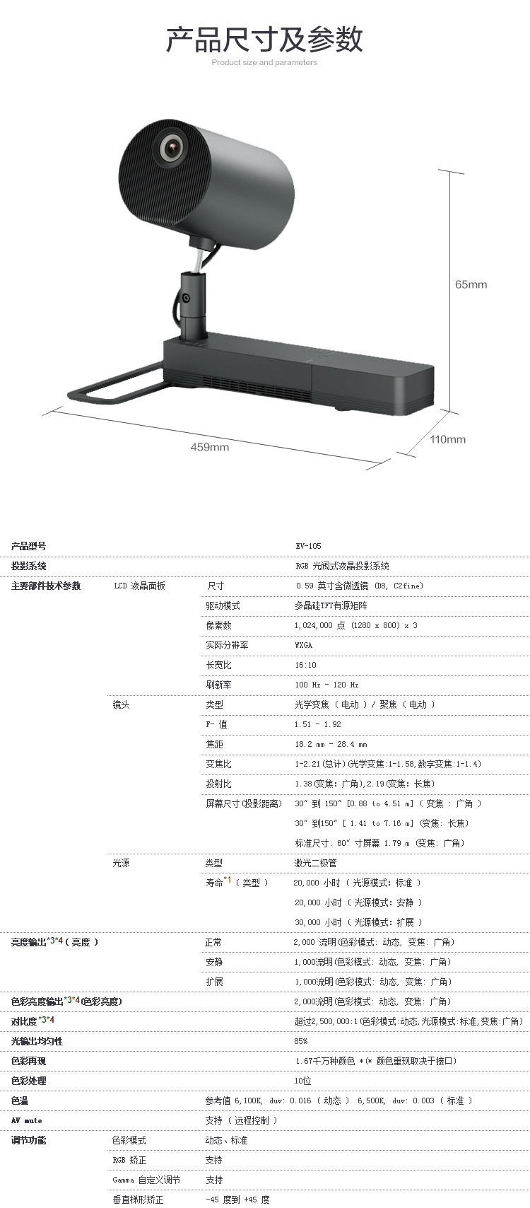 • 商品名称:爱普生 EPSON EV-105(LCD/2000流明/1280×800DPI)投影机