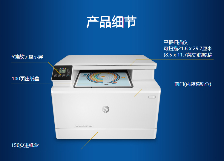 • 商品名称:惠普 HP M180N(手动双面打印/150页/彩色激光)多功能一体机