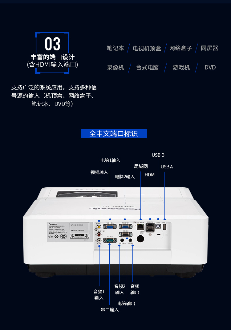 办公设备  > 会议/演示设备  > 投影演示  >  松下/Panasonic  >  松下 PANASONIC PT-SGZ400C (LCD/4000流明/1920×1200DPI) 投影机