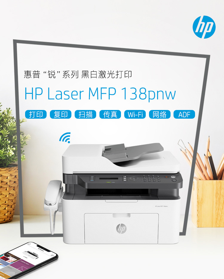 商品名称: 惠普 HP 138PNW(手动双面打印/150页/黑白激光)多功能一体机