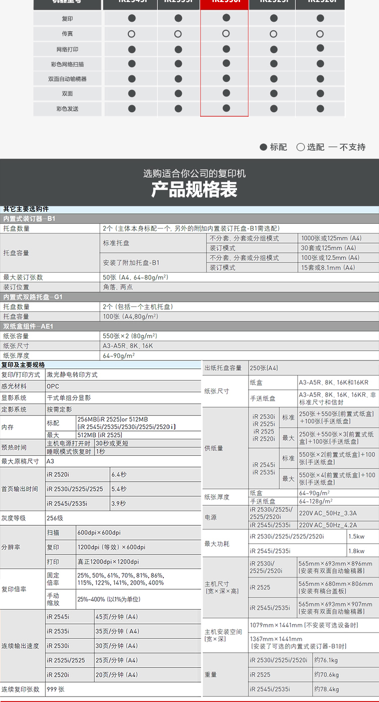 • 商品名称:佳能(CANON) iR2530i A3黑白激光 数码复合机 裸机不含工作台 白色 (单位:台)
