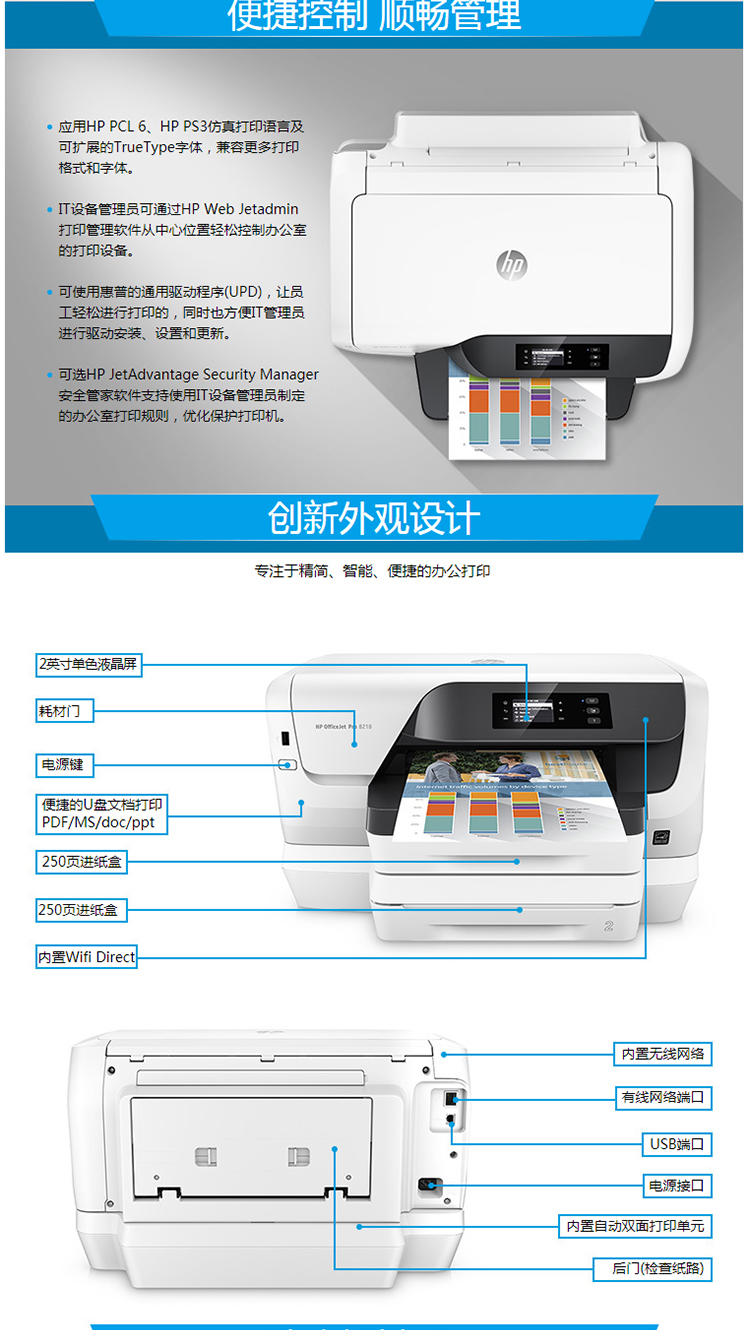 商品名称: 惠普 HP OfficeJet Pro 8216 Printer 彩色打印机喷墨打印机 (含免费上门安装+一年上门服务) 白色(单位:台)