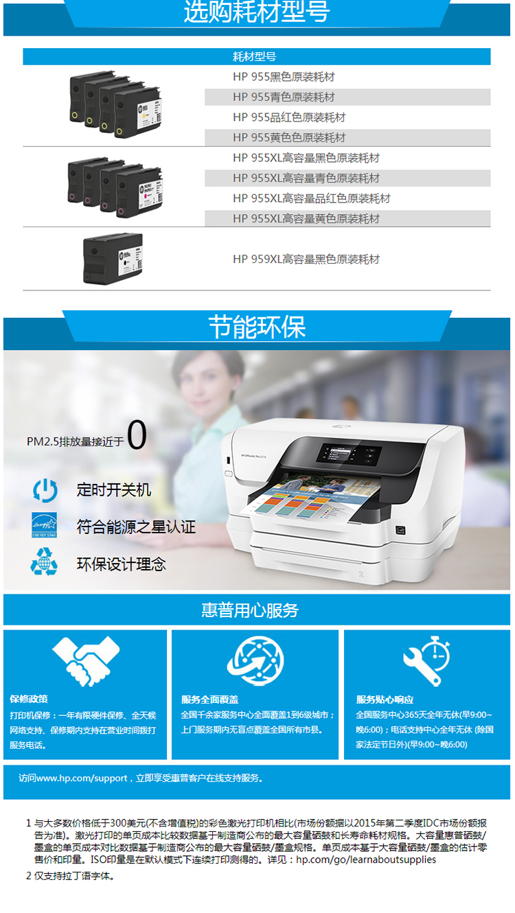 惠普 HP OfficeJet Pro 8216 Printer 彩色打印机喷墨打印机 (含免费上门安装+一年上门服务) 白色(单位:台)