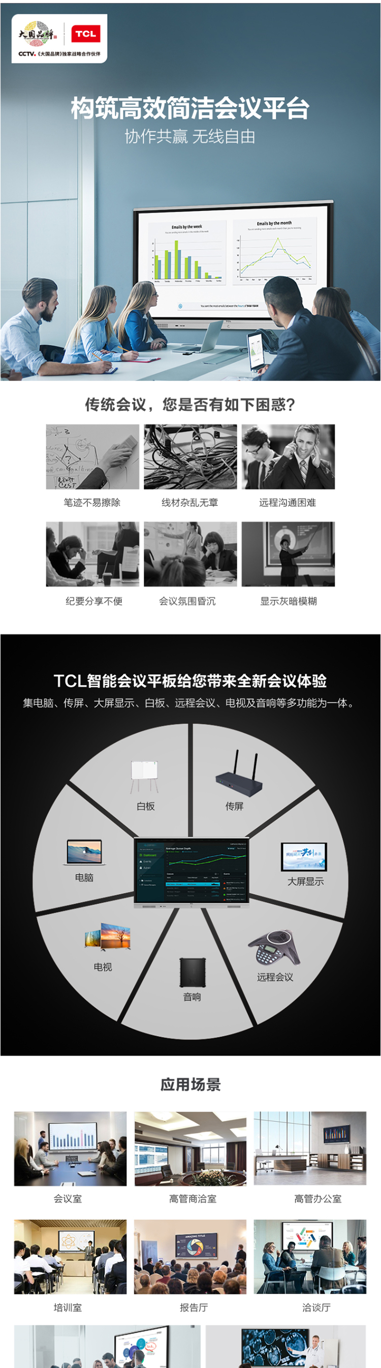 商品名称: TCL LE75V10TC 75英寸智能会议平板大屏触摸一体机(安卓win双系统I5/4G/128G/传屏器/智能笔/一年上门保修)(单位:套)